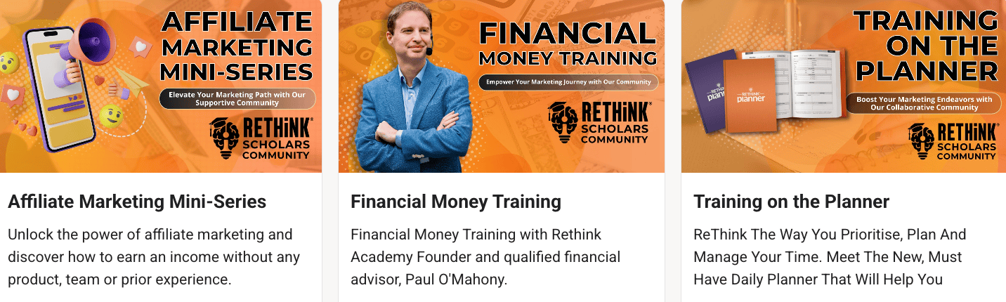 Become A Rethink Scholars & Join A Community Of Successful Online Entrepreneurs. Plus Get Unlimited Access To Rethink Rocket Fuel An All-In-One Sales, Marketing & Affiliate Software